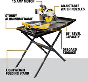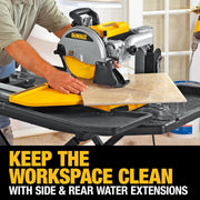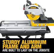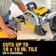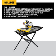 The DEWALT® 24" Wet Tile Saw with Stand is designed for tile installers and contractors who demand precision, durability, and portability. This wet saw offers powerful cutting capacity with a lightweight frame, making it easy to transport and set up on any jobsite. Ideal for cutting dense porcelain, ceramic, granite, marble, and glass tiles, it delivers accurate and clean cuts for a variety of tile installation applications.