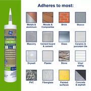 GE Sealants® Concrete Silicone 2 Sealant is a premium 100% silicone sealant designed for durability and flexibility in concrete, mortar, and stone projects. Ideal for contractors, tile installers, and general users, it delivers long-lasting protection against harsh weather, mold, and mildew, ensuring your projects stay sealed and secure for years.