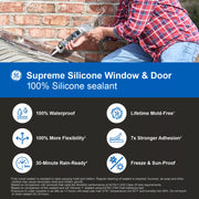 Choose GE Supreme Silicone Window & Door Sealant for a tough, flexible, and waterproof solution that lasts. Order now to protect your projects from harsh weather with confidence.