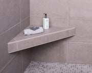 The Innovis Corporation 21.5"x21.5"x30" Triangular Better Bench is designed for easy installation in your shower. It is filled with mud and tiled over with your choice of tile, stone, glass, or mosaics, providing a customizable and durable seating solution.