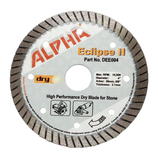 View full detailsThe Alpha Eclipse II Diamond Blade is a general purpose diamond blade designed for dry cutting common building materials including tile, masonry, c...