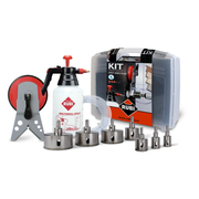 The RUBI EASYGRES PLUS Diamond Drill Bits Kit is the professional’s choice for precision wet drilling in ceramic, porcelain, glass, granite, and marble surfaces. Designed for use with standard electric drills, this complete tile drill bit set features a MULTIDRILL guide and built-in water cooling system to deliver clean, crack-free holes with ease. Whether you're mounting bathroom accessories or making cuts in delicate tiles, this kit ensures accuracy and durability on every job.