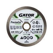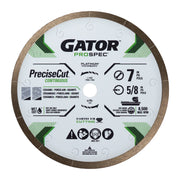 The GATOR PROSPEC™ PreciseCut™ Continuous Rim Diamond Blade delivers clean, chip-resistant cuts on porcelain, ceramic, and granite. A continuous high-quality diamond rim and slotted blade design enhance cooling and extend blade life. Built for tile saws and professional precision.