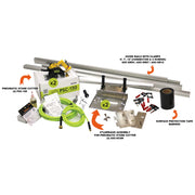 The Alpha PSC-150 Miter Cutting Kit is a rail-guided system designed to perform straight cuts and miter cutting on stone, porcelain slab, and large-format tile using PSC-150 wet stone cutters and carriage assemblies mounted to modular guide rails.